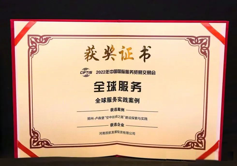 9月3日,2022年中国国际服务贸易交易会服务示范案例在北京发布,河南航投申报的“郑州—卢森堡‘空中丝绸之路’建设探索与实践”项目脱颖而出,被推选为“全球服务实践案例”,并在发布仪式上重点推介。这是河南首个在服贸会上获此殊荣的项目,意味着郑卢“空中丝路”的国际服务能力、项目影响力、开放合作潜力得到国家级平台的权威认可,更意味着郑卢“空中丝路”从河南省对外开放的“地方名片”上升到全球服务贸易的“金字招牌”,郑卢“空中丝路”向习近平总书记5年间的两次嘱托交出一份新答卷。